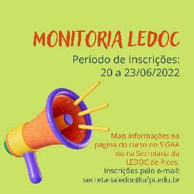 Informamos que as inscrições para o programa de monitoria da LEDOC/CSHNB 2022.1 estão abertas.