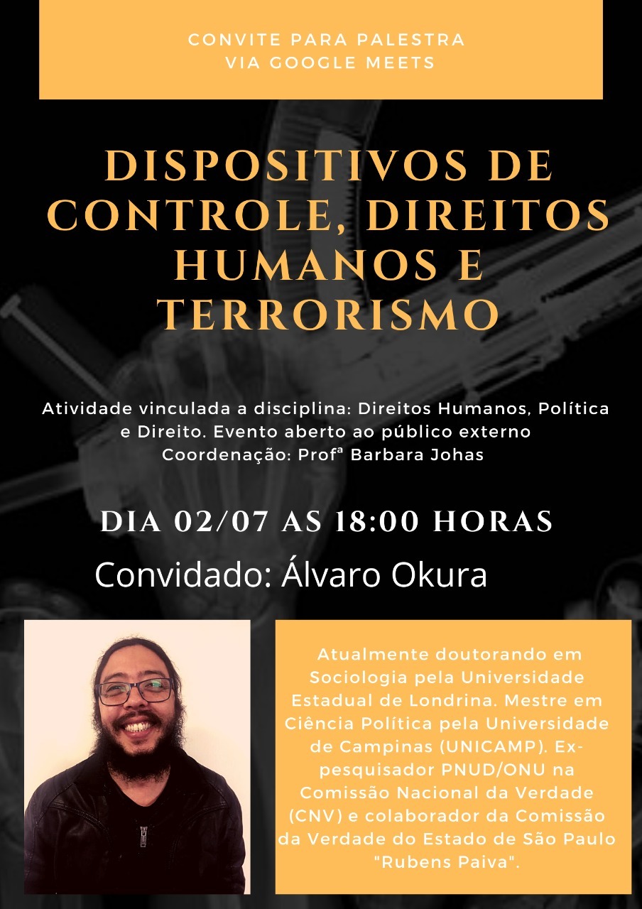 Convidamos a todxs para a aula: Dispositivos de controle, Direitos humanos e Terrorismo. Dia 02/07 as 18:00 horas.