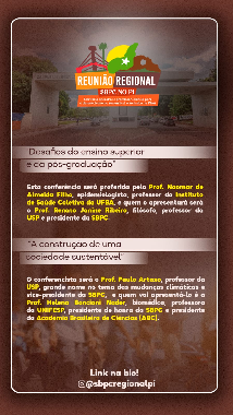 Em breve divulgaremos a programação completa no site do evento https://rr.sbpcnet.org.br/piaui/ e em nossas redes sociais https://www.instagram.com/sbpcregionalpi/?hl=pt-br