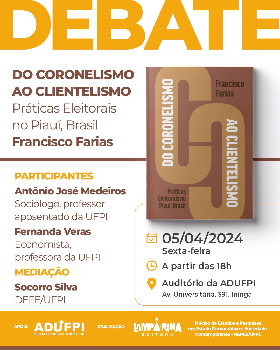 Convidamos todos os discentes a participarem do debate " Do coronelismo ao clientelismo" a fim de enriquecermos o debate da eleição de políticas eleitorais no Piauí.