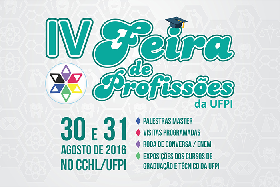 A Universidade Federal do Piauí (UFPI), por meio da Comissão Permanente UFPI e as Profissões (CPUFPIP), convida toda a comunidade para participar da IV Feira de Profissões, que acontecerá nos dias 30 e 31 de agosto, no Centro de Ciências Humanas e Letras - CCHL da UFPI. A Feira contará com palestras, rodas de conversas, exposições, entre outras atividades.