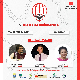 A Universidade Federal do Piauí (UFPI), por meio da Coordenação do Curso de Geografia do CCHL e do Grupo de Estudos em Geotecnologias: Pesquisa e Ensino (CNPq/UFPI), com o apoio da Coordenação do Curso de Geografia do CEAD, do Programa de Pós-Graduação em Geografia (PPGGEO) e do Centro Acadêmico de Geografia (CAGEO), irá realizar nos dias 26, 27 e 28 de maio o VI Dia do(a) Geógrafo(a).