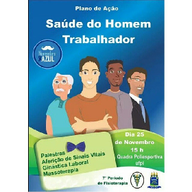 Aproveitando a campanha Novembro Azul, o Prof. Gabriel Mauriz e os alunos do 7º período do curso de Fisioterapia promoverão no dia 25/11 uma ação em saúde voltada para a atenção à saúde do Homem. Tradicionalmente, a população masculina preocupa-se menos com a saúde do que as mulheres, assim doenças que poderiam ter maiores chances de sucesso com o tratamento precoce acabam agravando-se e colocando em risco a vida de muitos homens.