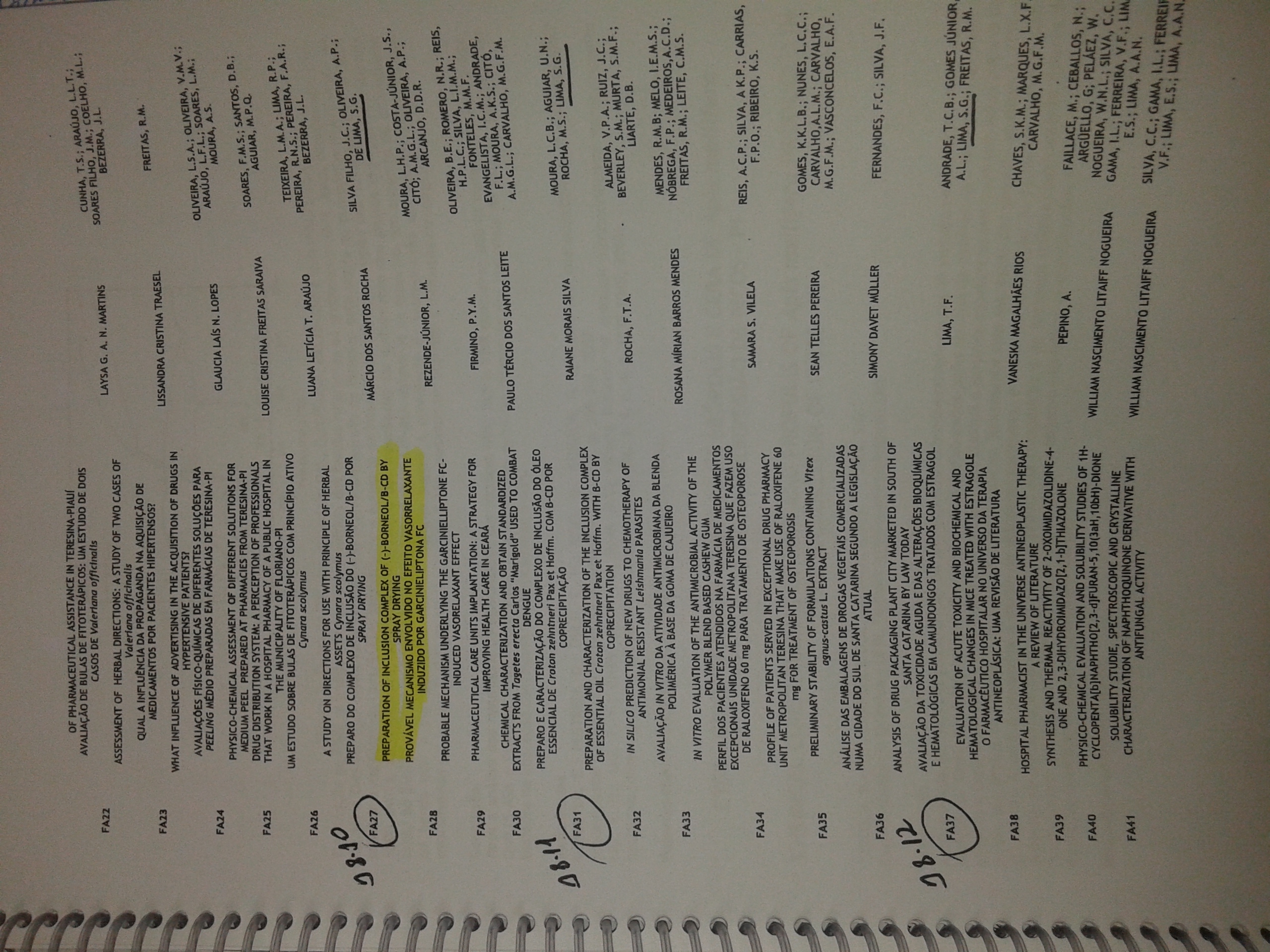 2012, Orientação de trabalho de conclusão de curso Avaliação de Projetos da Disciplina de Metodologia Científica do Programa de Pós-Graduação em Ciências Farmacêuticas da UFPI, Sidney Gonçalo de Lima, Paulo Michel Pinheiro Ferreira, Cito, A.M.G.L.