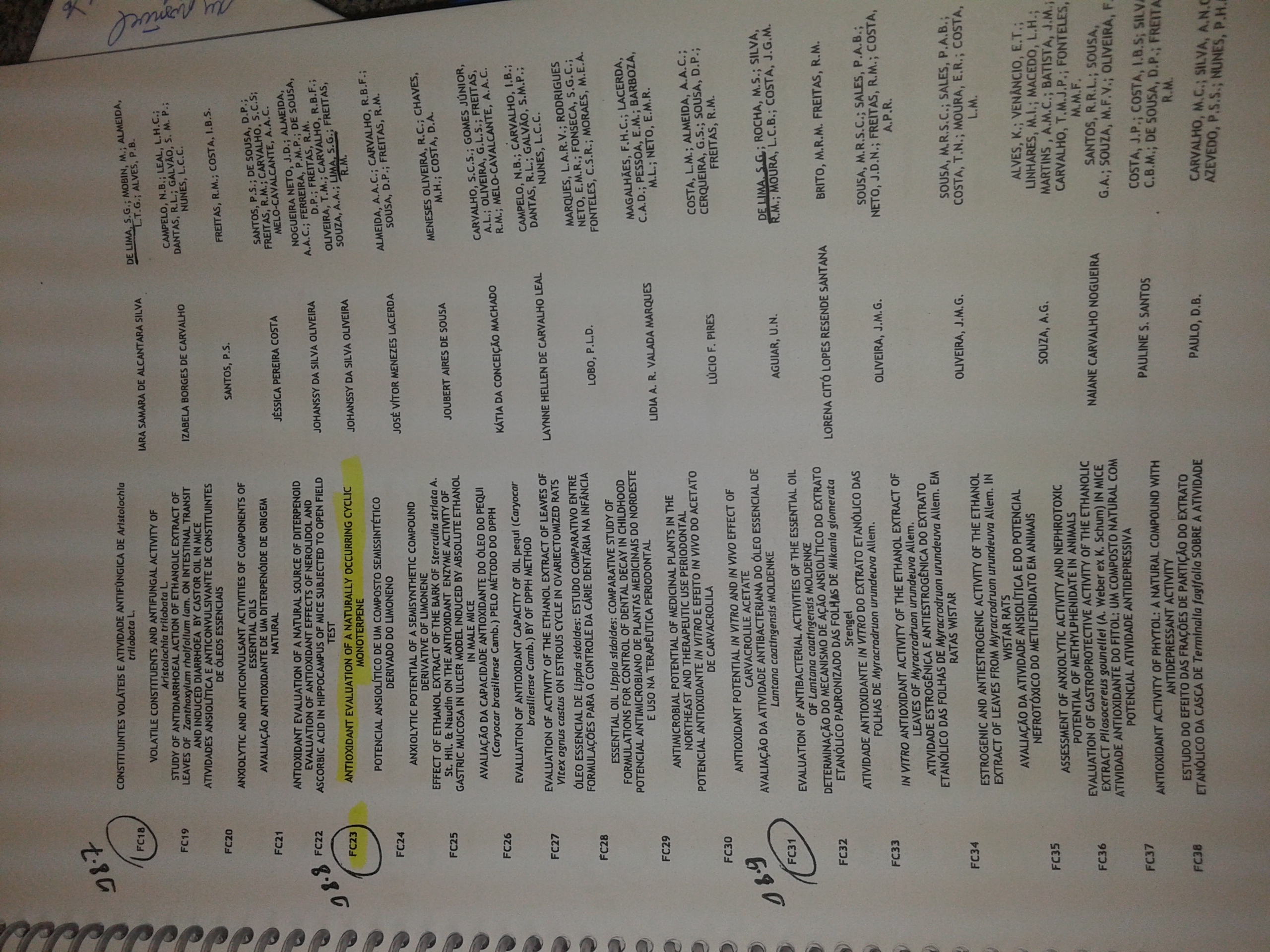 OLIVEIRA, A. P. ; SANTOS, M. R. V. ; ROCHA, M. S. ; SILVA FILHO, J. C. ; DE LIMA, S. G. ; DE LIMA, S. G. ; SILVA FILHO, J. C. ; QUINTANS JUNIOR, L. J. ; SERAFINI, M. R. ; OLIVEIRA, A. P. ; QUINTAS JUNIOR, L. J. ; ROCHA, M. S. ; SERAFINI, M. R. ; ARAUJO, A. A. S. ; ARAUJO, A. A. S. .