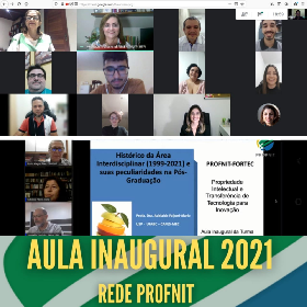 Aconteceu no dia 05/03/21 a Aula Inaugural da Rede PROFNIT, com Palestra da Profa. Dra. Adelaide Faljoni-Alario (US) , Coordenadora da Área Interdisciplinar da CAPES e Aula Zero ministrada pela Profa Dra Wagna Piller, Coordenadora Nacional do PROFNIT, com a participação dos ingressantes da Turma 2021 e professores do PROFNIT-UFPI.