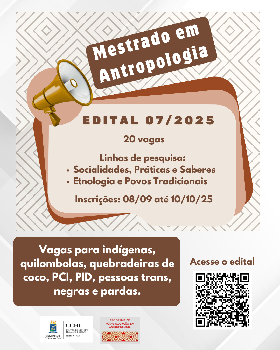 Edital de seleção do Mestrado em Antropologia com ingresso em 2026.1