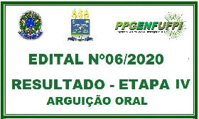 A Universidade Federal do Piauí (UFPI), por meio do Programa de Pós-Graduaçäo em Enfermagem (PPGENF), torna público o RESULTADO DA ETAPA IV - Arguição oral, do EDITAL Nº. 06/2020-UFPI/CCS/PPGENF.