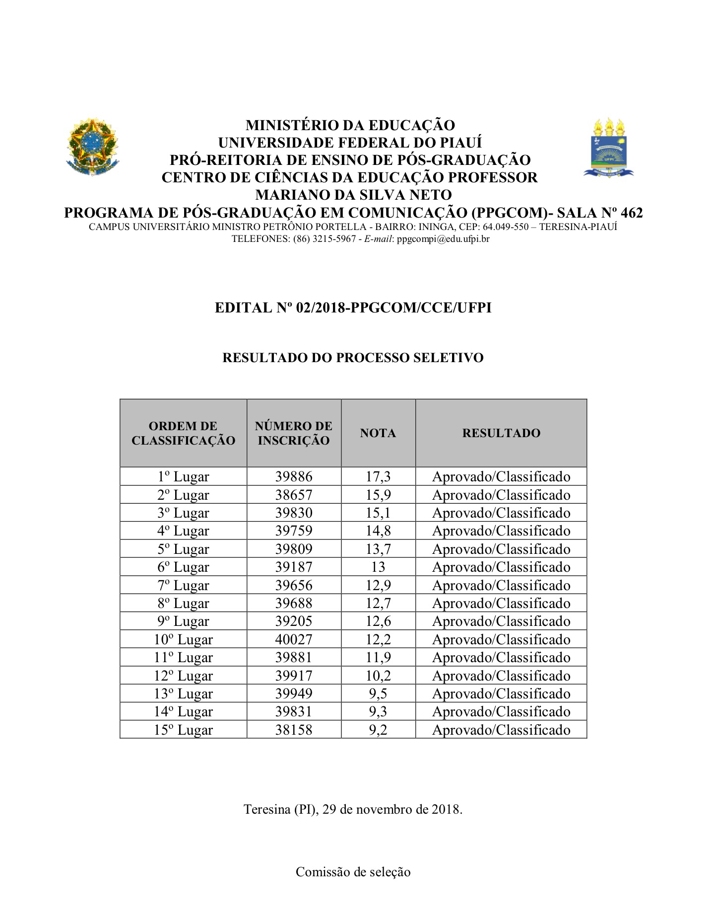 EDITAL Nº 02/2018-PPGCOM/CCE/UFPI