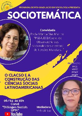 A mediação será feita pela Profª Drª Lila Luz do PPGS, tendo como convidada a Profª Drª Mônica Dias Martins do PPGS-UEC/Coord. do Observatório das Nacionalidade e editora de Tensões Mundiais.