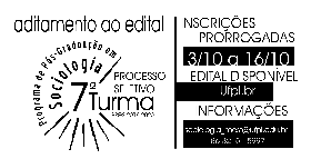 A Universidade Federal do Piauí (UFPI), por meio da Pró-Reitoria de Ensino de Pós-Graduação/Coordenadoria de Pós-Graduação, torna público o aditamento (cronograma) do edital de abertura de inscrições e realização de seleção ao Programa de Pós-Graduação em Sociologia, em nível de mestrado, biênio 2018-2020.
