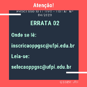 O candidato deverá enviar toda a documentação seguindo a ordem e composição estipulada no item 2.2 deste edital para o e-mail: inscricaoppgsc@ufpi.edu.br