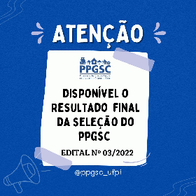 O Programa de Pós-Graduação em Saúde e Comunidade divulga o Resultado Final do processo seletivo referente ao edital N.º 03/2022 - PPGSC/UFPI.