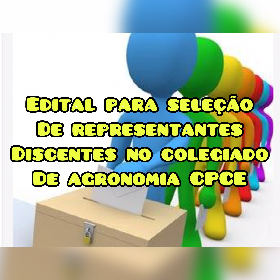 Caros discentes, no dia 24/11/2020 será a eleição para a escolha dos 5 representantes discentes para compor o colegiado de curso da engenharia agronômica.