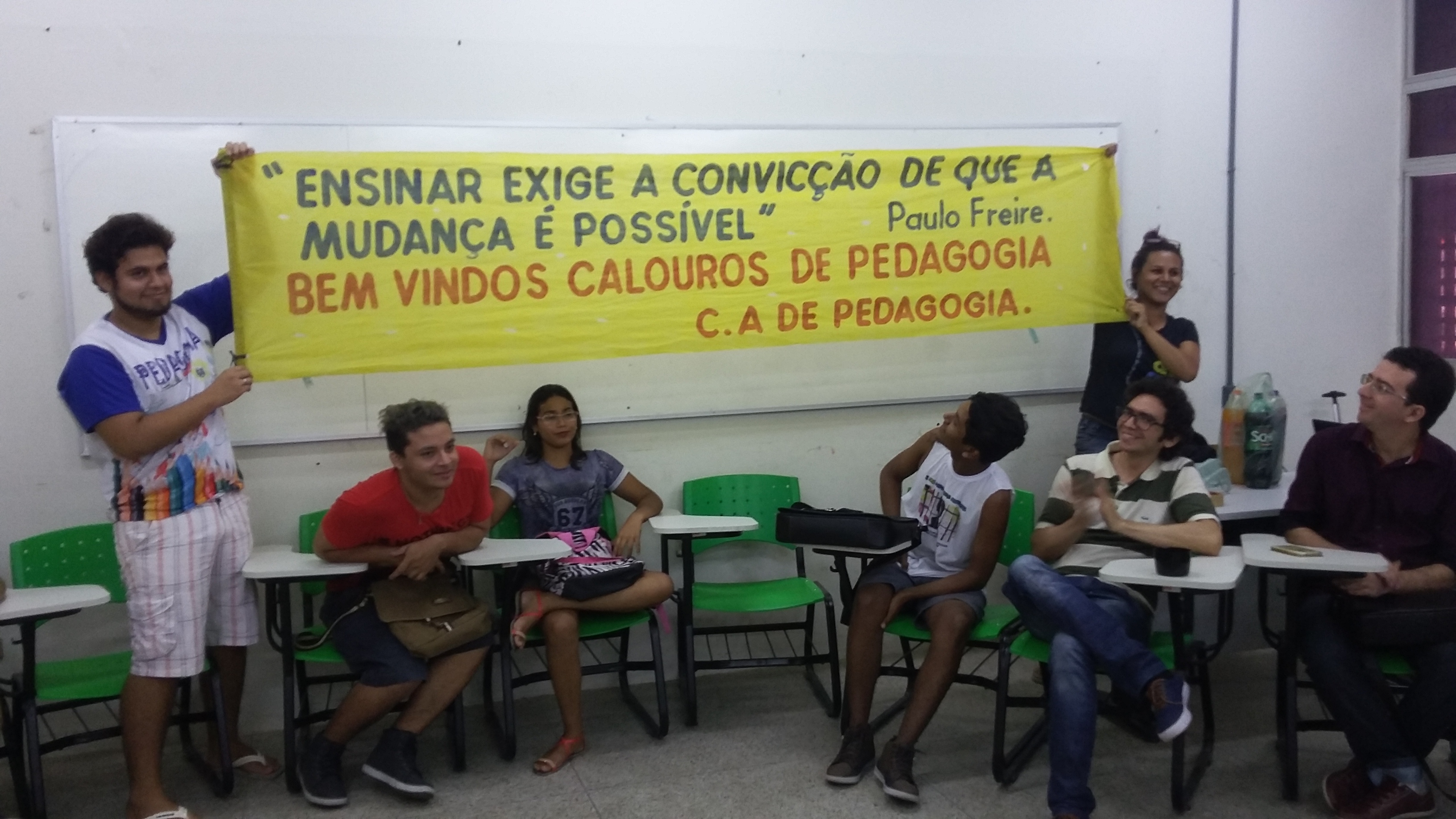 No dia 08/04/2016, os professores e as professoras do Curso de Pedagogia realizaram aula de acolhida dos calouros e das calouras, alunos e alunas da Turma de 2016. A aula de acolhida envolveu os professores Osmar Braga, Coordenador do Curso, Samuel Melo, Chefe do Departamento, Francélio Araújo, Luciana Cavalcante, Agerzimília Costa, docentes presentes, representantes do Centro Acadêmico da Pedagogia e os alunos e alunas da Turma de 2016.