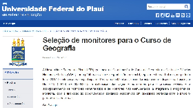 A Universidade Federal do Piauí (UFPI), por meio da Coordenação do Curso de Geografia do Centro de Ciências Humanas e Letras (CCHL), torna público aos alunos de graduação presencial, regularmente matriculados, no período letivo 2017.1 e interessados em participar do Programa de Monitoria, em conformidade com o disposto na Resolução No 76/15–CEPEX, de 09/06/2015, a distribuição das vagas e as normas para o processo seletivo e o acompanhamento de Monitores Remunerados e de Monitores Não Remunerados, a integrarem o Programa de Monitoria, com a finalidade de desenvolverem atividades acadêmicas em disciplinas ofertadas para o primeiro período letivo de 2017.1.
