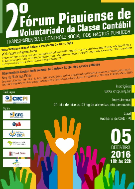 No dia 05 de dezembro desse mês acontaecerá no Auditório da OAB o 2º Fórum Piauiense de Voluntariado da Classe Contábil - Transparência e Controle Social dos Gastos Públicos!