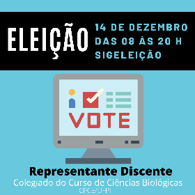 A eleição para a escolha de 04 representantes discentes junto ao colegiado do curso de Ciências Biológicas será realizada segunda-feira, dia 14 de dezembro, das 08:00 às 20:00 h.