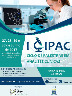 A Liga Acadêmica Piauiense de Análises Clínicas  - LAPAC convida toda a comunidade acadêmica e demais interessados a participar do I Ciclo de  Palestras em Análises Clínicas, que objetiva informar e discutir sobre temas relevantes na área de análises clínicas bem como: