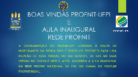 A Coordenação do PROFNIT-UFPI convida à todos os ingressAntes da turma 2021 e todos os docentes para uma reunião de boas vindas, no dia 05/03/21, às 18h, em sala virtual no google meeT e, após, assistirem a aula inaugural da rede profnit nacional, às 19h, no canal do youtube profnit brasil.