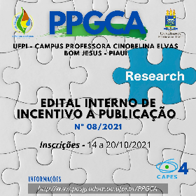 A Coordenação do Programa de Pós-Graduação em Ciências Agrárias (PPGCA), da Universidade Federal do Piauí (UFPI), torna público aos docentes permanentes do programa o Edital de auxílio financeiro ao pesquisador, como incentivo à produção intelectual, conforme as disposições contidas na PORTARIA N.º 59/2021 - PRPG de 04 de outubro de 2021.