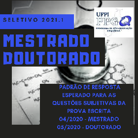 ACoordenação do Programa de Pós-Graduação em Química torna público, o padrão de resposta esperado das questões subjetivas da prova escrita dos Editais 04/2020/PPGQ/UFPI – 2021.1 – Mestrado e 05/2020/PPGQ/UFPI – 2021.1 – Doutorado