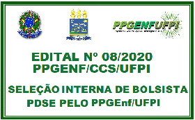 A Coordenação do Programa de Pós-Graduação em Enfermagem (Stricto Sensu) - Nível Mestrado/Doutorado Acadêmico da Universidade Federal do Piauí faz saber aos interessados que se encontram abertas as inscrições para o Processo Seletivo Interno, visando à seleção de bolsista ao Programa de Doutorado Sanduíche no Exterior pelo PPGEnf/UFPI, conforme Edital no19/2020 –PDSE (https://www.gov.br/capes/pt-br/centrais-de-conteudo/editais/09102020_edital-19- pdse.pdf) e Edital no 01/2020 de 18 de novembro de 2020 da PRPG da UFPI (https://ufpi.br/arquivos_download/arquivos/Edital_Doutorado_Sanduiche20201118205404.pdf) e o explicitado neste Edital.
