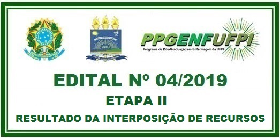 A Universidade Federal do Piauí (UFPI), por meio da Pró-Reitoria de Ensino de Pós-Graduação (PRPG), divulga os resultados dos recursos interpostos da ETAPA II - ANÁLISE DE PROJETOS DE PESQUISA do processo seletivo do Programa de Pós-Graduação em Enfermagem, Mestrado e Doutorado.