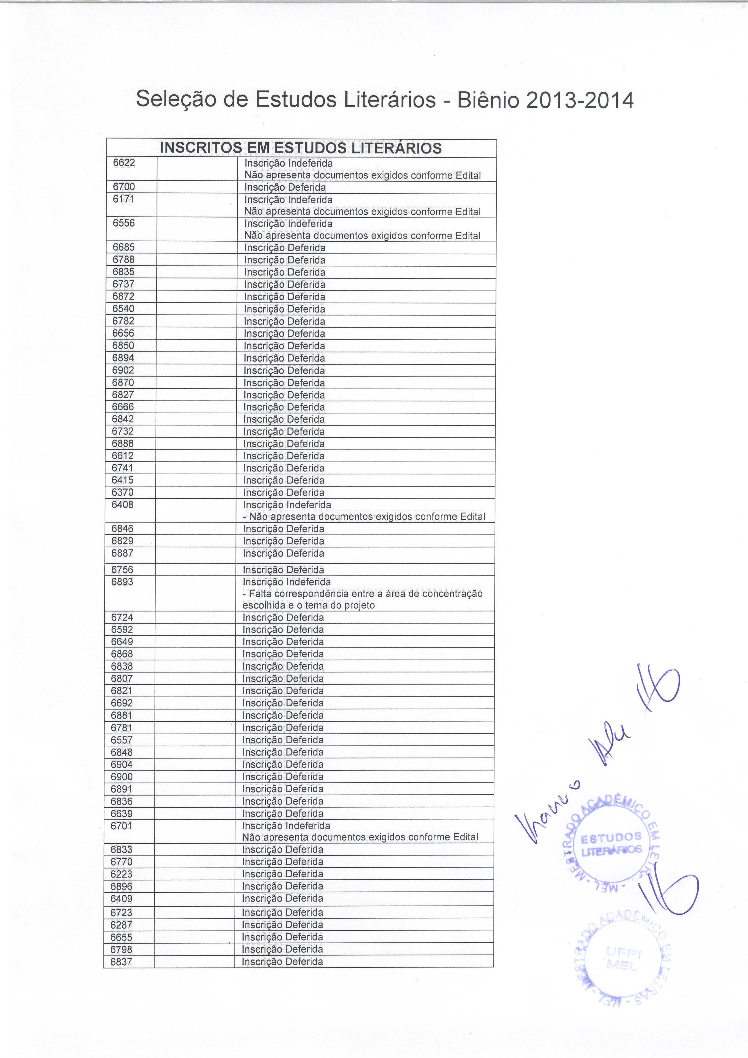PPGL divulga inscrições homologadas para o processo seletivo para o Mestrado em Letras biênio 2014-2016 da área de concentração de Estudos Literários.