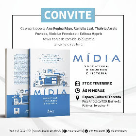 O Programa de Pós-Graduação em Comunicação da Universidade Federal do Piaúí convida a todos e a todas a se fazerem presentes no lançamento do livro "Mídia: Narrativas, Discursos e História", que acontecerá nesta quarta-feira, 27 de fevereiro de 2019, a partir das 19h00min, no Espaço Cultural Toccata.