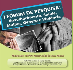 No período de 25 à 27 de Março de 2015 no Auditório de Enfermagem – Bloco 12 DEPENF/CCS/UFPI. Campus Ministro Petrônio Portella – Ininga – Teresina – PI. Ocorrerá I FÓRUM DE PESQUISA: Envelhecimento, Saúde, Mulher, Gênero e Violência. Realização do Programa de Pós-Graduação em Enfermagem (PPGEnf). Departamento de Enfermagem do Centro de Ciências da Saúde da Universidade Federal do Piauí (DEPENF/CCS/UFPI).