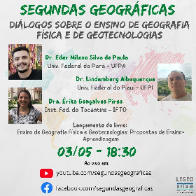 A live de lançamento do livro ocorrerá no dia 03 de maio de 2021, com transmissão online pelo canal do Laboratório de Pesquisa em Metodologias e Práticas de Ensino de Geografia (LeGeo) da Universidade Federal de Tocantins (UFT), dentro do Projeto Segundas Geográficas 2021.