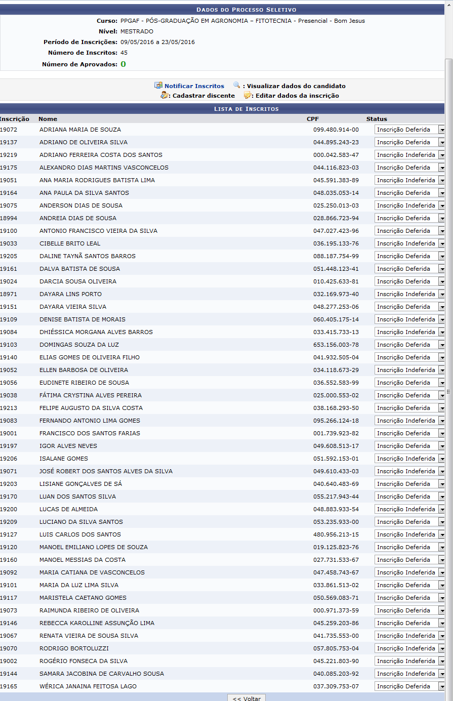O PPG-Agronomia/Fitotecnia divulga o deferiemento/Indeferimento das inscrições do EDITAL Nº01/2016-PPGAF/CPCE.