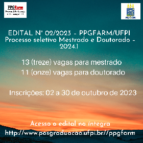 INSCRIÇÕES ABERTAS PARA O - EDITAL N° 02/2023 – Programa de Pós-Graduação em Farmacologia- PPGFARM/UFPI