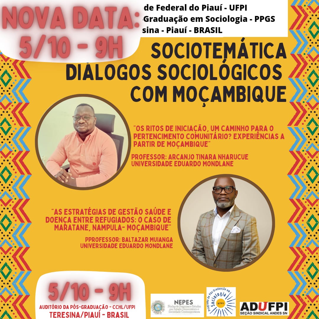 Informamos que a nova data do evento "Sociotemática: Diálogos Sociológicos com Moçambique" será quinta-feira, 5/10, às 9h.
