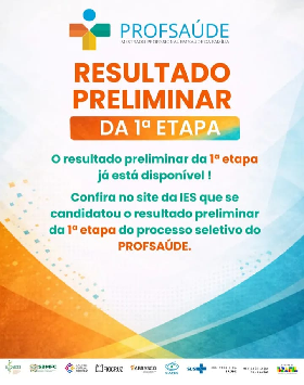 A Universidade Federal do Delta do Parnaíba (UFDPar), por meio do Programa de Pós-Graduação em Saúde da Família - PROFSAÚDE/UFDPar, torna público o resultado preliminar da primeira etapa (prova escrita/discursiva) do Edital de Seleção – Turma 6. Orientações sobre recurso desta etapa estão presentes no itens 2, 9 e anexo 8 do edital.